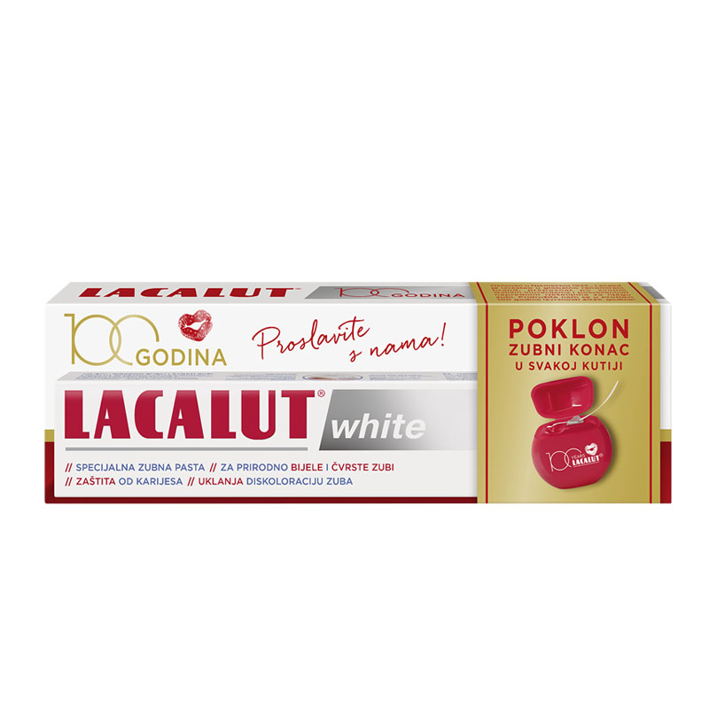 U promo pakiranju za proslavu 100 godina postojanja Lacaluta, uz Lacalut White