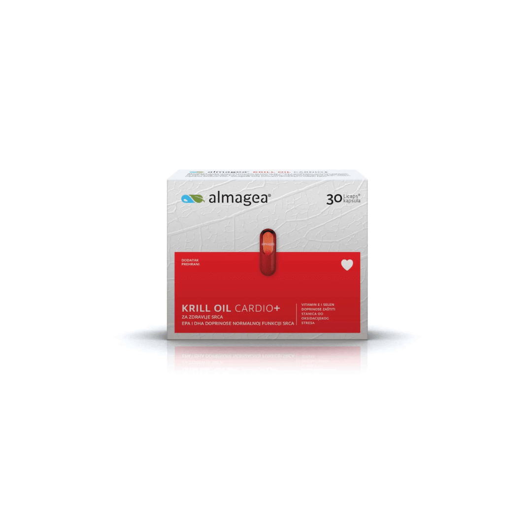 Almagea® Krill Oil Cardio+ je dodatak prehrani u Licaps® kapsulama koji služi kao potpora normalnom funkcioniranju srca i krvnih žila. Zbog dinamičnog tempa života i neuravnotežene prehrane, tijelo često ne dobiva dovoljno najvrjednijih omega-3 masnih kiselina, EPA i DHA, koje su dokazano važne za rad srca.