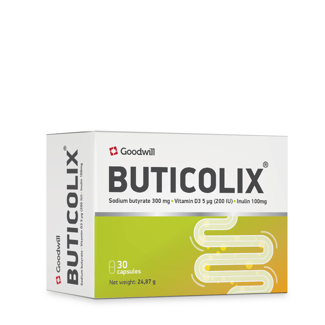 BUTICOLIX kapsule predstavljaju napredno rješenje za zdravlje probavnog sustava, temeljeno na sinergiji natrijevog butirata, vitamina D i prebiotika inulina. Zahvaljujući tehnologiji mikrogranulacije, ovaj proizvod omogućuje ciljanu dostavu ključnih nutrijenata izravno u crijeva, osiguravajući oporavak sluznice tamo gdje je najpotrebniji.