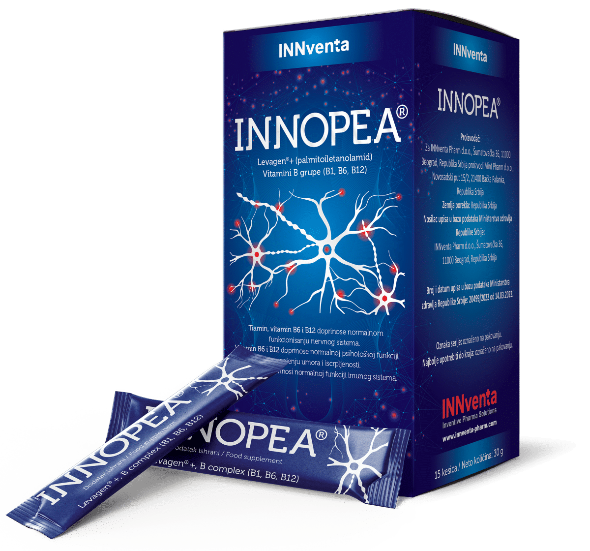 INNOPEA® je dodatak prehrani sa palmitoiletanolamidom i vitaminima B grupe koji doprinose normalnoj funkciji živčanog i imunog sustava, normalnoj psihološkoj funkciji, kao i smanjenju umora i iscrpljenosti.