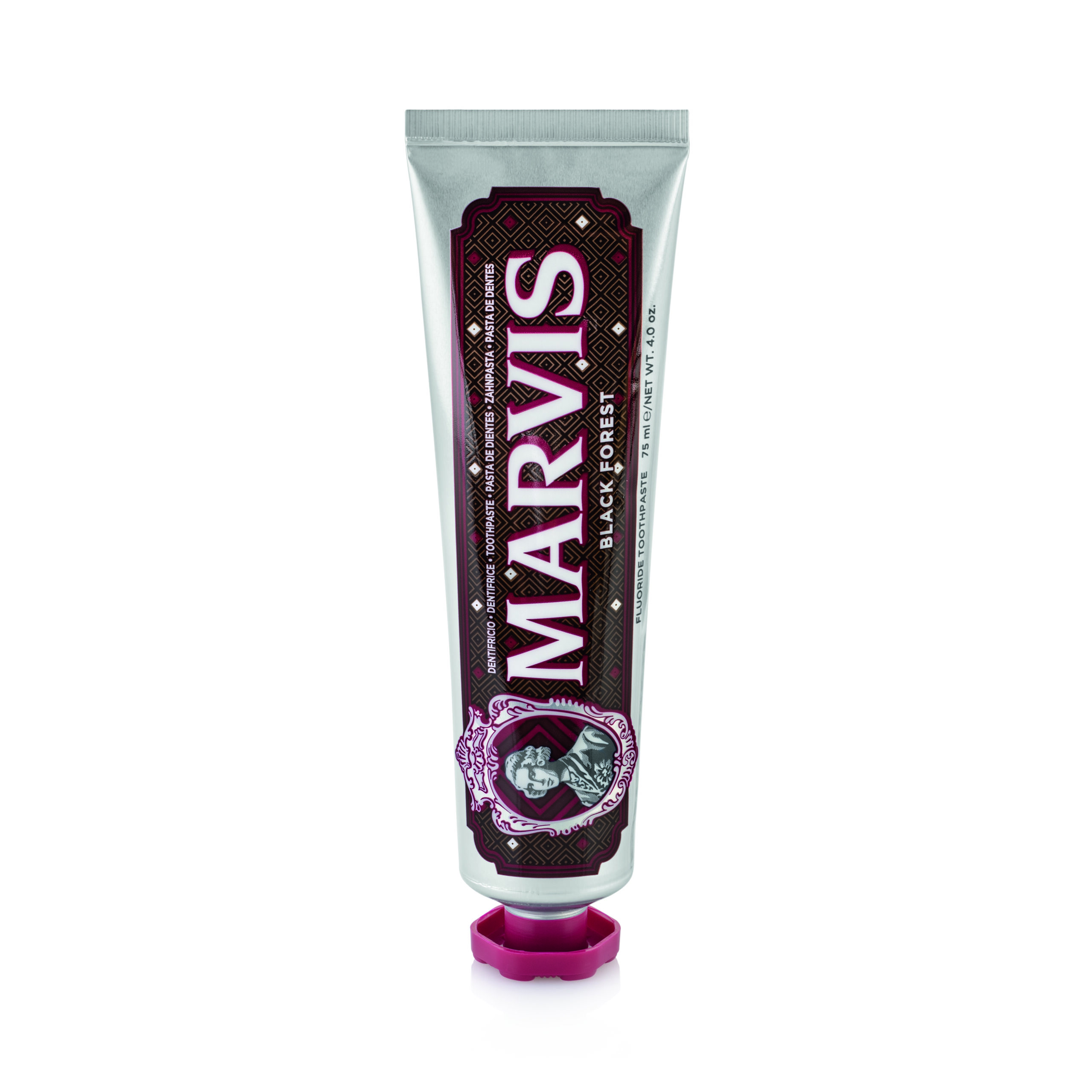 Marvis Black Forest limitirano je izdanje zubne paste koje kombinira bogate note tamne čokolade, sočne višnje i blagog marcipana uz osvježavajuću mentu.