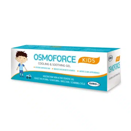 OSMOFORCE sadrži patentiranu , osmotski aktivnu supstancu OSMO4 koja putem osmoze izvlači vodu na površinu kože, hladi ,hidrira, smanjuje svrab i eritem.